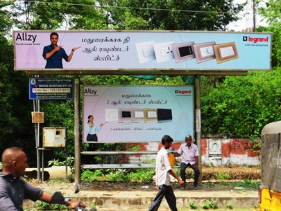 Pole kiosks are also positioned alongside the road medians, at a slightly higher elevation. This medium is a favourite among the corporate sector, who delight in having only their logos displayed repeatedly over a couple of kilometres. In Madurai they are 84 in number, spread across four locations.